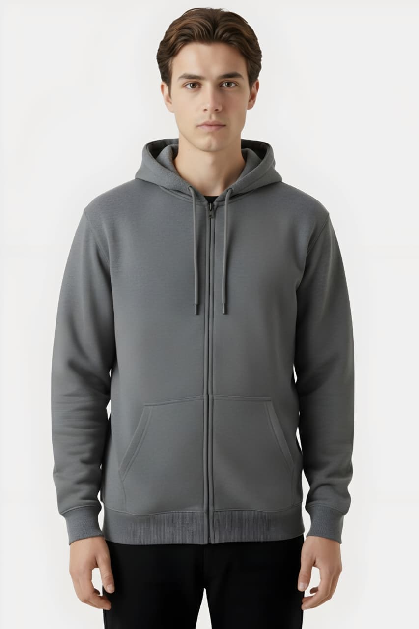 Gray Zip-Up Hoodie – Classic Streetwear Zipper Hoodie