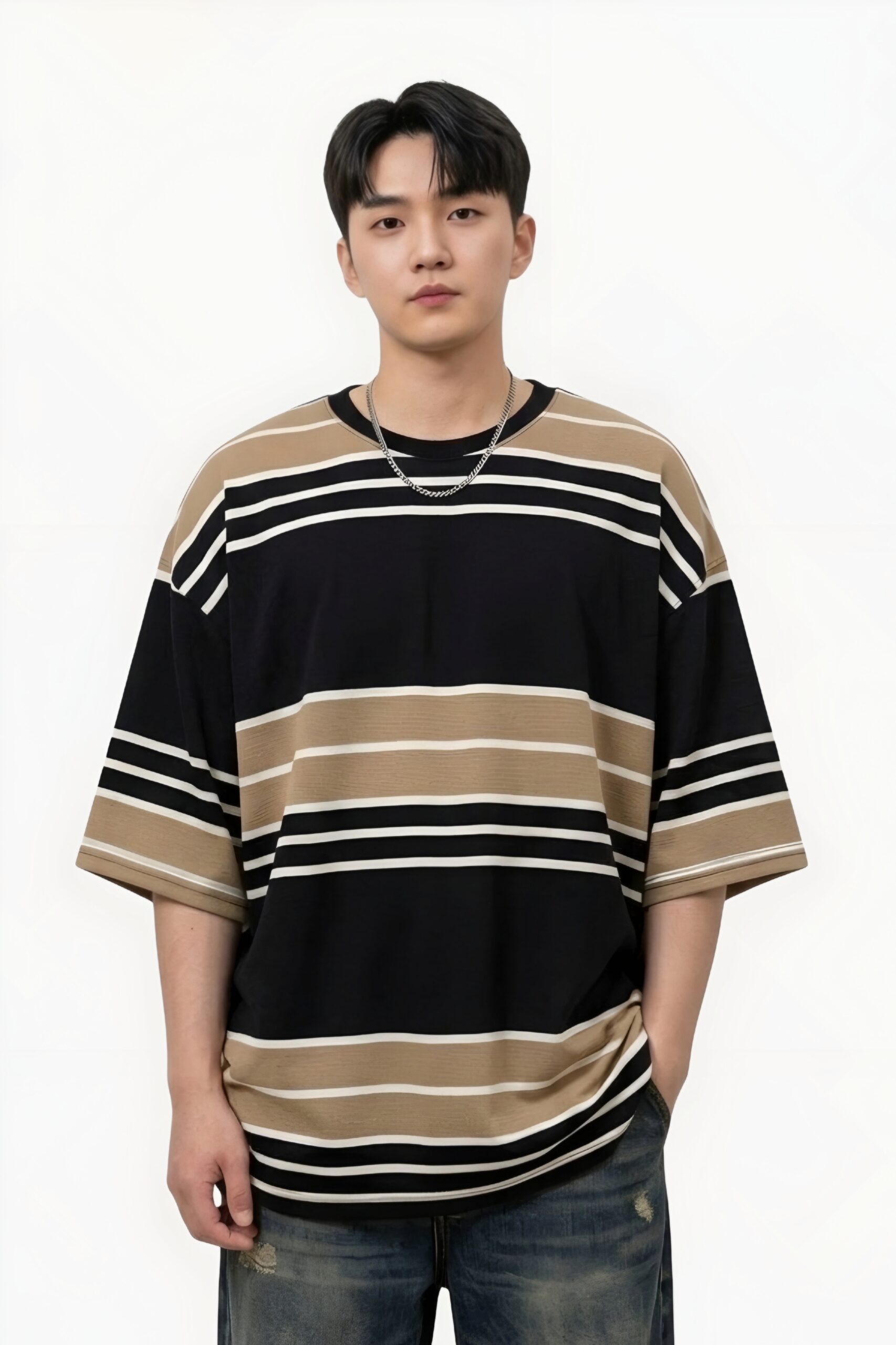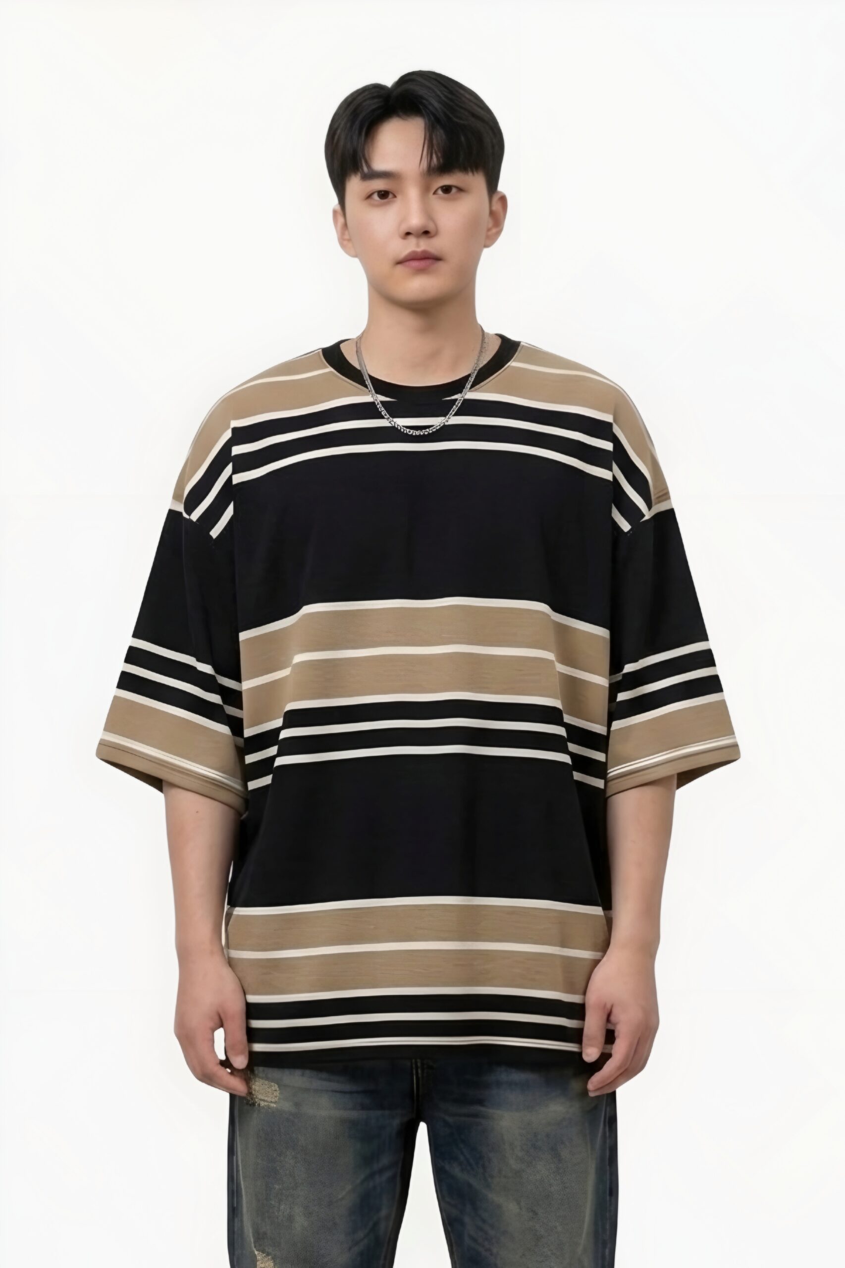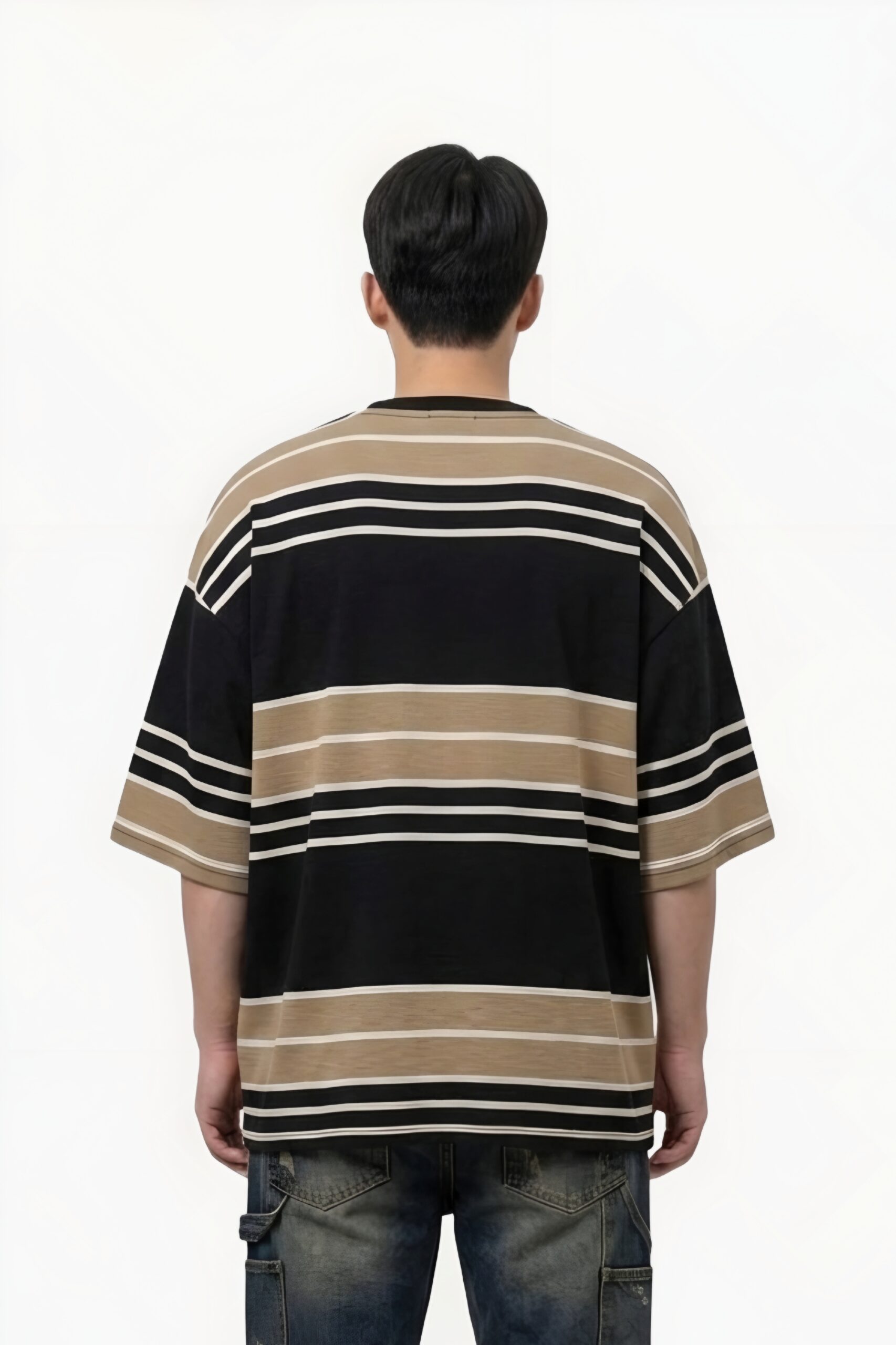 Old Money Striped Drop Shoulder T-Shirt – Premium Oversized Streetwear